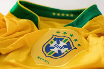Escudo da camisa da Seleção Brasileira de Futebol (Foto Arena LTDA / Alamy Stock Photo)