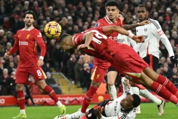 O Liverpool começou melhor no primeiro tempo, pressionando o Fulham nos dez minutos iniciais, mas foi a equipe visitante que saiu na frente. Em cruzamento de Robinson, Andreas Pereira bateu de voleio e contou com um desvio em Robertson para abrir o placar em Anfield.