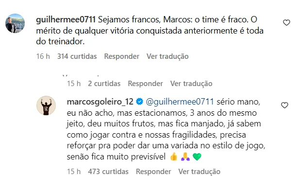 “‘Num’ caí em zoeira de rival não, deixa quieto, se tá ruim ‘pá nois’, imagina pra eles”, respondeu Marcos.