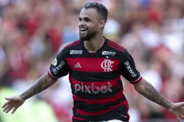O jogador do Flamengo Michael comemora seu gol durante a partida contra o Internacional no estádio do Maracanã pelo Brasileirão Série A (Jorge Rodrigues/AGIF (via AP)