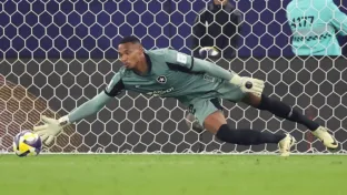 Goleiro John, do Botafogo, tenta defesa em partida contra o Pachuca (MEX) pela Copa Intercontinental 2025 (Vitor Silva/Botafogo)