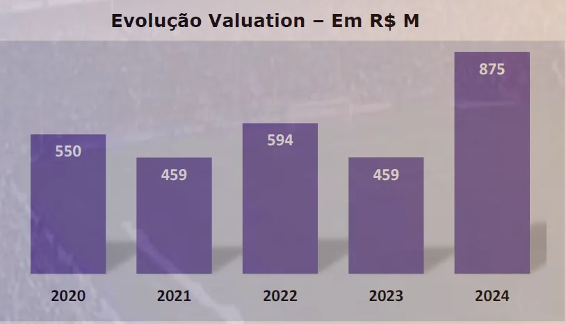 Esse valor coloca o Esquadrão de Aço na 15ª posição entre os times mais valiosos do Brasil, com um valuation (valor de uma empresa) 92% maior do que os R$ 459 milhões registrados em 2023.