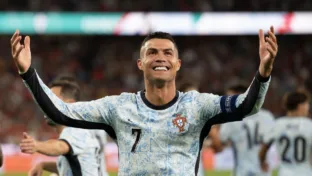 Cristiano Ronaldo comemora gol por Portugal (Alexandre de Sousa/Alamy Live News)