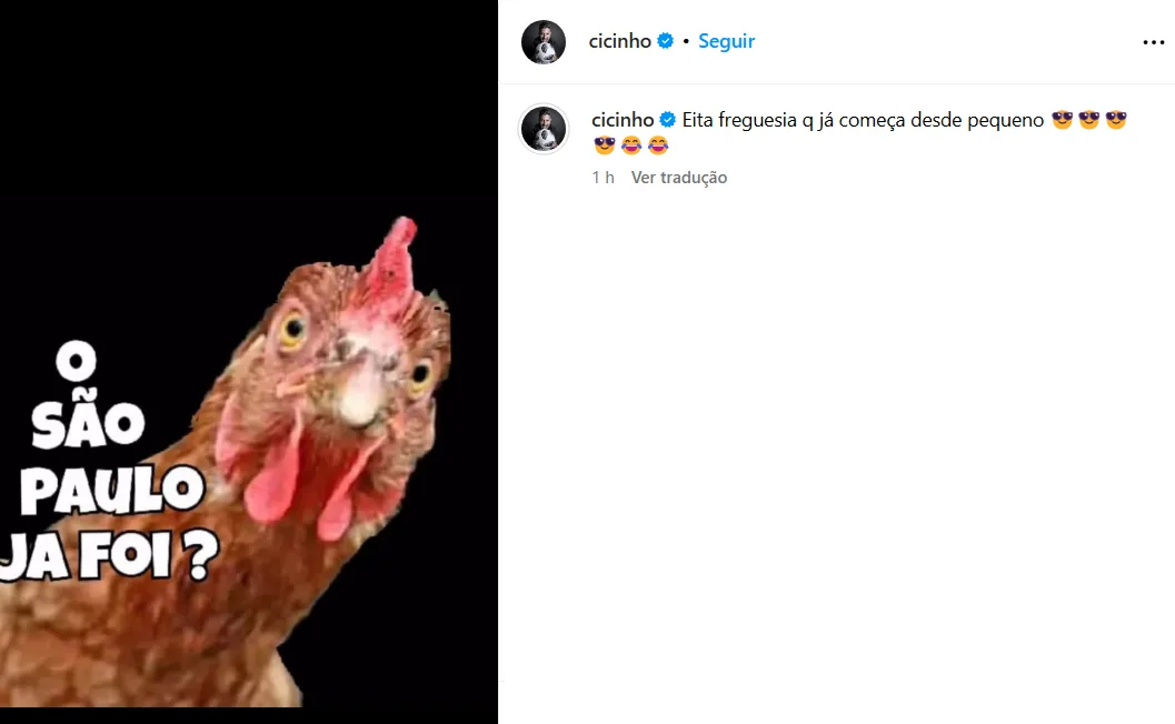 “Eita freguesia que já começa desde pequeno.”, escreveu Cicinho, em publicação no Instagram.