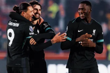 A provável escalação do Liverpool na Champions aparece com: Alisson; Alexander-Arnold, Konate, Van Dijk, Tsimikas; Mac Allister, Gravenberch; Salah, Jones, Gakpo; Darwin Núñez.