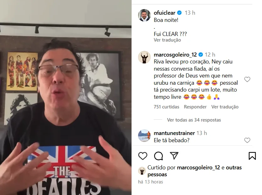 “Riva levou pro coração, Ney caiu nessas conversa fiada, aí os professor de Deus vem que nem urubu na carniça. O pessoal tá precisando carpir um lote, muito tempo livre.”, escreveu Marcos, na página Fui Clear.