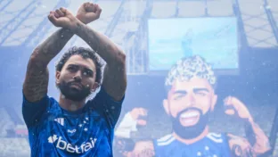 Ex-Flamengo Gabigol em apresentação em seu novo clube. Foto: Divulgação/Cruzeiro