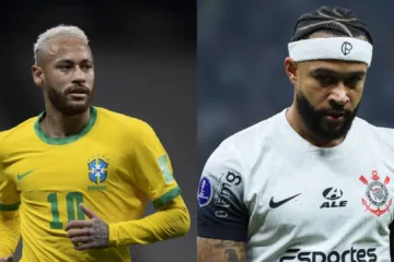 Neymar e Memphis Depay podem ser rivais no Brasil. Fotos: Lucas Figueiredo/CBF e Brazil Photo Press/Alamy Live News