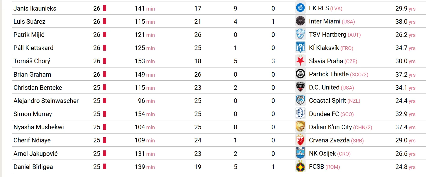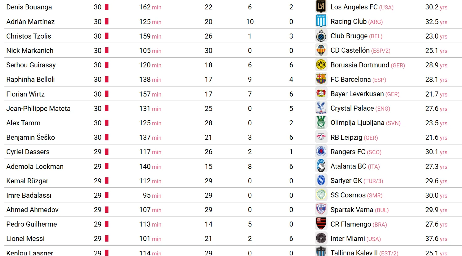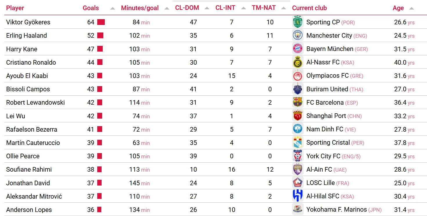 A liderança do ranking em 2024 ficou com Viktor Gyökeres do Sporting, com 64 gols. Em seguida aparece Haaland, do Manchester City, (52), seguido de Harry Kane, do Bayern de Munique (47) e Cristiano Ronaldo, do Al-Nassr (44).