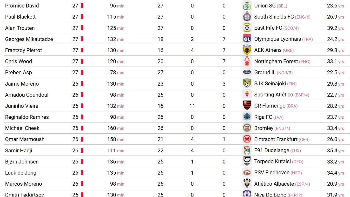 Para efeito de comparação, em 2024, considerando competições internacionais de clubes, como a Champions League, Vini balançou as redes em 10 oportunidades, superando quase todos os atletas do Top-10 do ranking, com exceção de Ayoub El Kaaki, do Olympiacos.