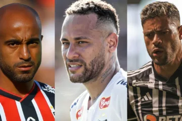 Neymar, Lucas Moura e Hulk, estrelas do futebol nacional. Foto: Divulgação/Santos, SPFC e Atlético-MG