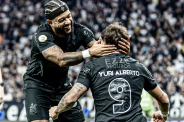 Memphis Depay e Yuri Alberto comemorando gol (Rodrigo Coca/ Ag. Corinthians)