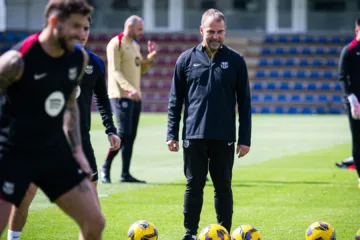 Hansi Flick em treino do Barcelona (foto: Victor Salgado/FCB)