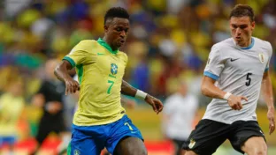 Vinícius Júnior disputa bola em duelo contra o Uruguai (Rafael Ribeiro - Divulgação - CBF)