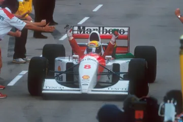 Ayrton Senna em sua última vitória na F1 em 1993 (Reprodução/X @McLarenF1)