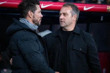 Diego Simeone e Hansi Flick se enfrentam em mais um Atlético de Madrid x Barcelona (foto: Victor Salgado/FCB)