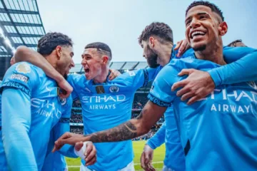 Jogadores do City celebram gol pela Premier League (Divulgação)