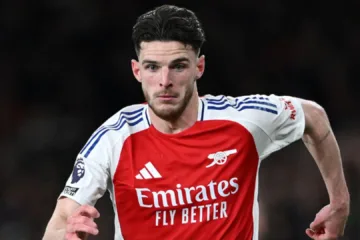 Declan Rice em ação com a camisa do Arsenal (Divulgação)