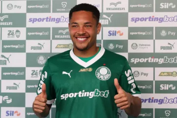 Vitor Roque em apresentação no Palmeiras - (Cesar Greco/Palmeiras)