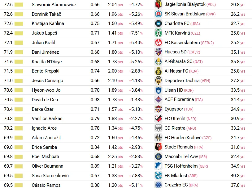 No mundo do futebol é normal vermos goleiros mais experientes ainda em atividade e atuando em alto nível. O ranking do CIES ajuda a deixar isso evidente.