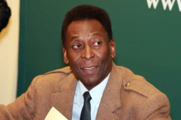 Pelé na livraria Barnes & Noble em sessão de autógrafos (Luiz Ribeiro/Invision/AP)