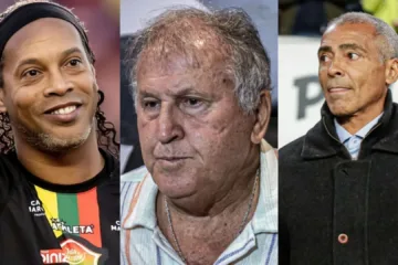Zico, Ronaldinho Gaúcho e Romário, lendas do futebol brasileiro. Foto: Divulgação
