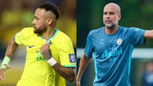 Neymar e Pep Guardiola, dois dos grandes nomes do futebol mundial. Fotos: Vitor Silva/CBF e Divulgação/Manchester City
