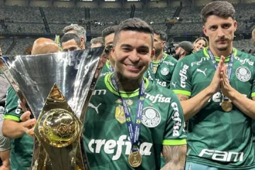 Dudu comemorando o Brasileirão de 2023 (Divulgação/Palmeiras)