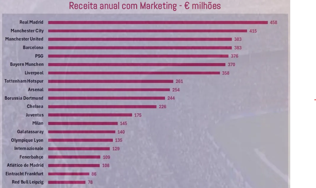 O rival Barcelona e o PSG aparecem empatados com 383 milhões de euros enquanto o Bayern de Munique fecha o Top-5.