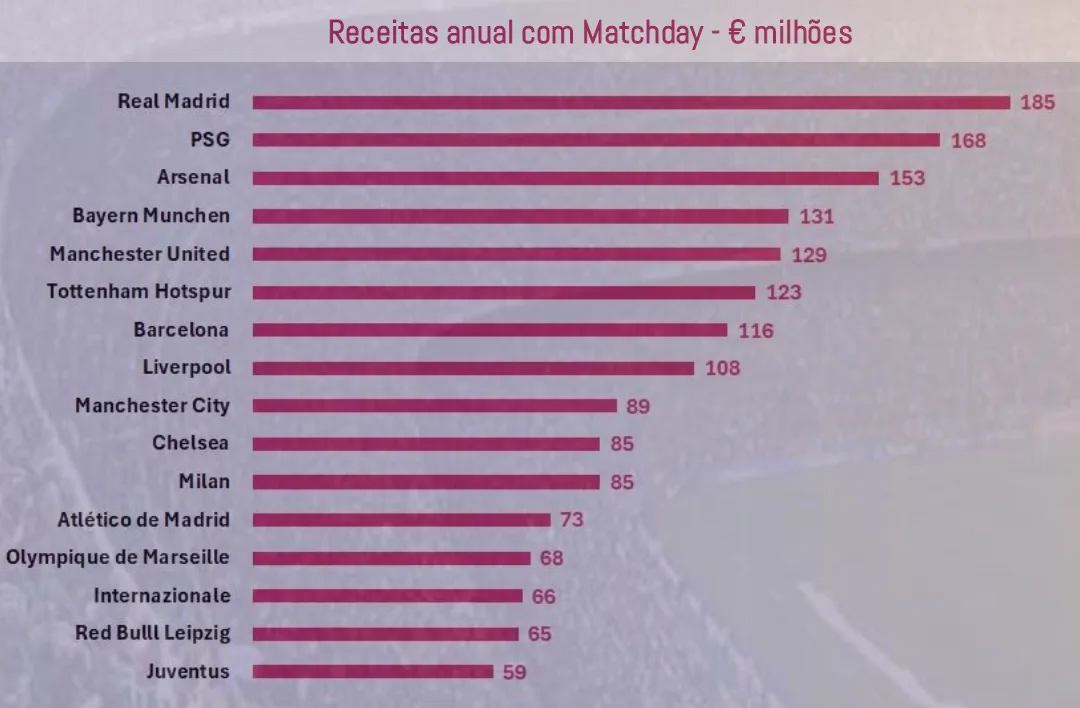 Conforme detalhado pela empresa Sports Value, cada torcedor do Real gasta em média 102 euros por partida. Esse valor é abaixo do registrado pelo PSG (137 euros) e Barcelona (118 euros).