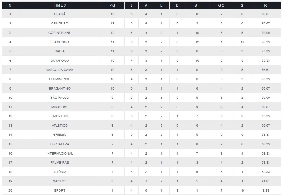 Classificação como mandante do Brasileirão