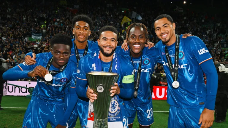 Jogadores do Chelsea em título da Conference League (Divulgação)