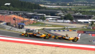 Lando Norris e Oscar Piastri se isolaram do restante do grid após o recomeço do GP da Áustria. Piastri ultrapassou o companheiro de equipe na volta 11, mas não sustentou a liderança e voltou para o segundo lugar.