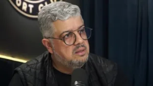 Ao mesmo tempo, o jornalista mostrou um blazer que alegou ter sido enviado por Kaiki. “Jogou na boa, de terno ontem”, exaltou, enquanto tirava do bolso da roupa uma foto do jogador do Palmeiras. “Ontem o Estêvão ficou no bolso do Kaiki”, ressaltou, enquanto exibia a imagem do atacante.