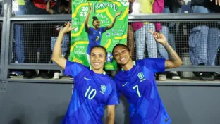 Outra coisa que chamou atenção no segundo jogo, foi uma imagem divulgada pela atacante Kerolin junto de Marta. Na imagem, as duas atletas fizeram um ‘X’ com os braços, em homenagem a filha falecida do treinador Luís Enrique, do PSG.