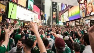 A mobilização dos torcedores do Verdão nos EUA tem chamado a atenção nas redes sociais, com várias imagens da presença dos palmeirenses na Times Square, um dos cartões postais da ‘Big Apple’ viralizando e deixando bastante otimismo para uma forte presença nas partidas do clube neste Mundial, a começar neste domingo (15), quando o Alviverde fará no MetLife Stadium, em East Rutherford, sua estreia no torneio, diante do Porto.