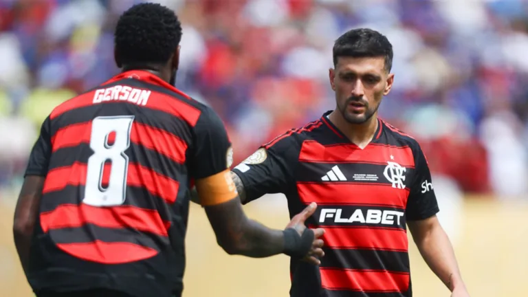Gerson e Arrascaeta, em jogo do Mundial (Gilvan de Souza/Flamengo)