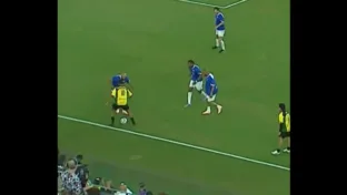 Depois, Ronaldinho Gaúcho aplica mais uma sequência de dribles, deixando Yassine completamente confuso. Ele foi ‘salvo’ pela dupla marcação no brasileiro que acabou desarmando-o.
