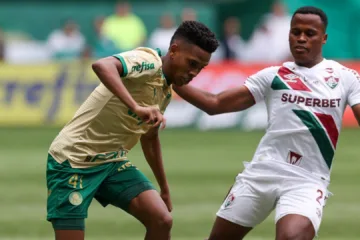 Estêvão disputa bola com Jhon Arias em Palmeiras x Fluminense (Cesar Greco/Palmeiras/by Canon)