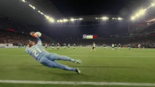 “Não foi tão bem batido assim. Dá uma olhada. Não foi tão bem batido.”, decretou Galvão Bueno. “Ele bateu forte.”, avisou o Craque Neto. “Foi forte, mas não para o canto. Uma baita defesa. Em pênalti, é sempre uma baita defesa […] Não é para perturbar sua vida, mas um pênalti faz uma falta em uma ‘final dessa…’.”, prosseguiu o locutor. “Ainda mais com um time forte como é o Palmeiras.”, externou o apresentador da Band.