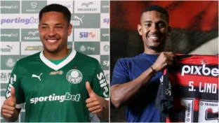 Vitor Roque e Samuel Lino estão entre os reforços mais caros do Brasileirão (Cesar Greco/Palmeiras - Divulgação/Flamengo)