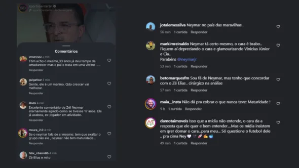 A opinião de Zé Elias sobre as declarações de Neymar foi repercutida nos comentários da publicação feita na página do “Sportscenter”. A grande maioria deu razão ao ex-jogador, cobrando maturidade e uma postura mais série do atacante. Contudo, também houve torcedor que apontou falta de entendimento por parte da mídia com o atacante, afirmando que o craque muitas vezes se torna alvo de polêmica sem fazer nada.