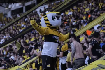 Diante da grande chance de o clube garantir a vaga na Série A em 2026, a mascote do Criciúma foi à loucura na comemoração no Heriberto Hulse. em meio à festa de jogadores e torcedores, o Tigrão foi parar no fosso, entre as arquibancadas e o campo.