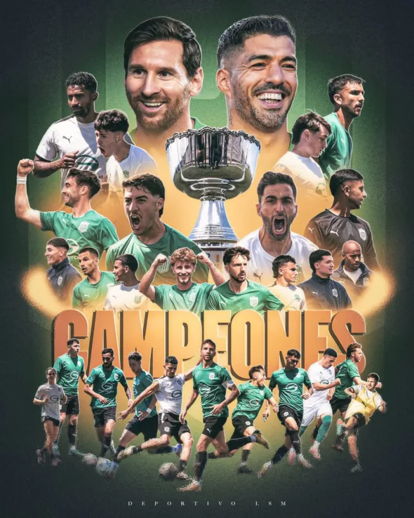 O Deportivo LSM viveu um dia histórico neste sábado. O time de Lionel Messi e Luis Suárez conquistou o título da 4ª divisão do Uruguai e garantiu o acesso à 3ª divisão na próxima temporada. A conquista marca a primeira campanha profissional do time, que estreou oficialmente na AUF neste ano.