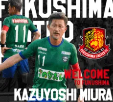 Esbanjando vitalidade aos 58 anos, o atacante japonês Kazu Miura acertou nesta terça-feira com o Fukushima United, clube da J-League 3, a terceira divisão do Japão para esta temporada. Kazu, que começou no futebol profissional na década de 80, pertence ao Yokohama FC, da segunda divisão, e foi emprestado ao Fukushima até o meio de 2026.