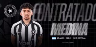 Depois de algumas idas e vindas, o volante Medina, enfim, foi anunciado de forma oficial pelo Botafogo. O meio-campista de 23 anos chega neste fim de semana para a realização de exames médicos e deve assinar um vínculo com o clube carioca até o fim de 2029.