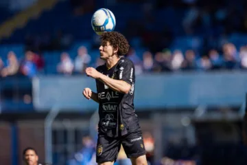 Fabiano, jogador do Amazonas, durante partida contra o Avaí no estádio da Ressacada pelo campeonato Brasileiro B 2024. (Associated Press / Alamy Stock Photo)