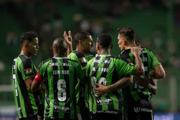 Jogadores do América-MG comemoram gol. Foto: Sipa US/Alamy Live News