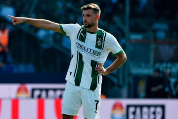 Em jogo oficial, Kevin Stöger (Borussia Mönchengladbach) no dia 31 de agosto de 2024 (© dpa picture alliance / Alamy Stock Photo)