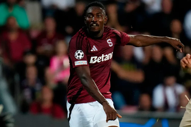 Em jogo oficial, Victor Olatunji (Sparta Prague) no dia 18 de setembro de 2024 (© Associated Press / Alamy Stock Photo)